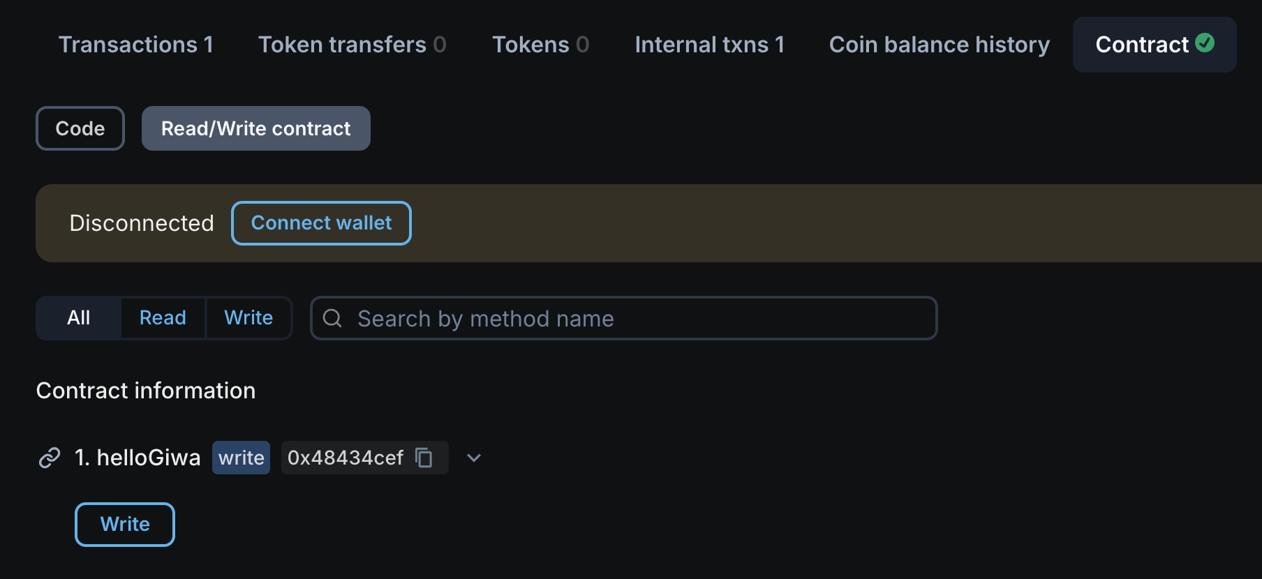 npx hardhat ignition deploy ignition/modules/Giwa.ts --network giwaSepoliaIf you see output like the following, your smart contract is deployed on-chain and anyone can interact with it.